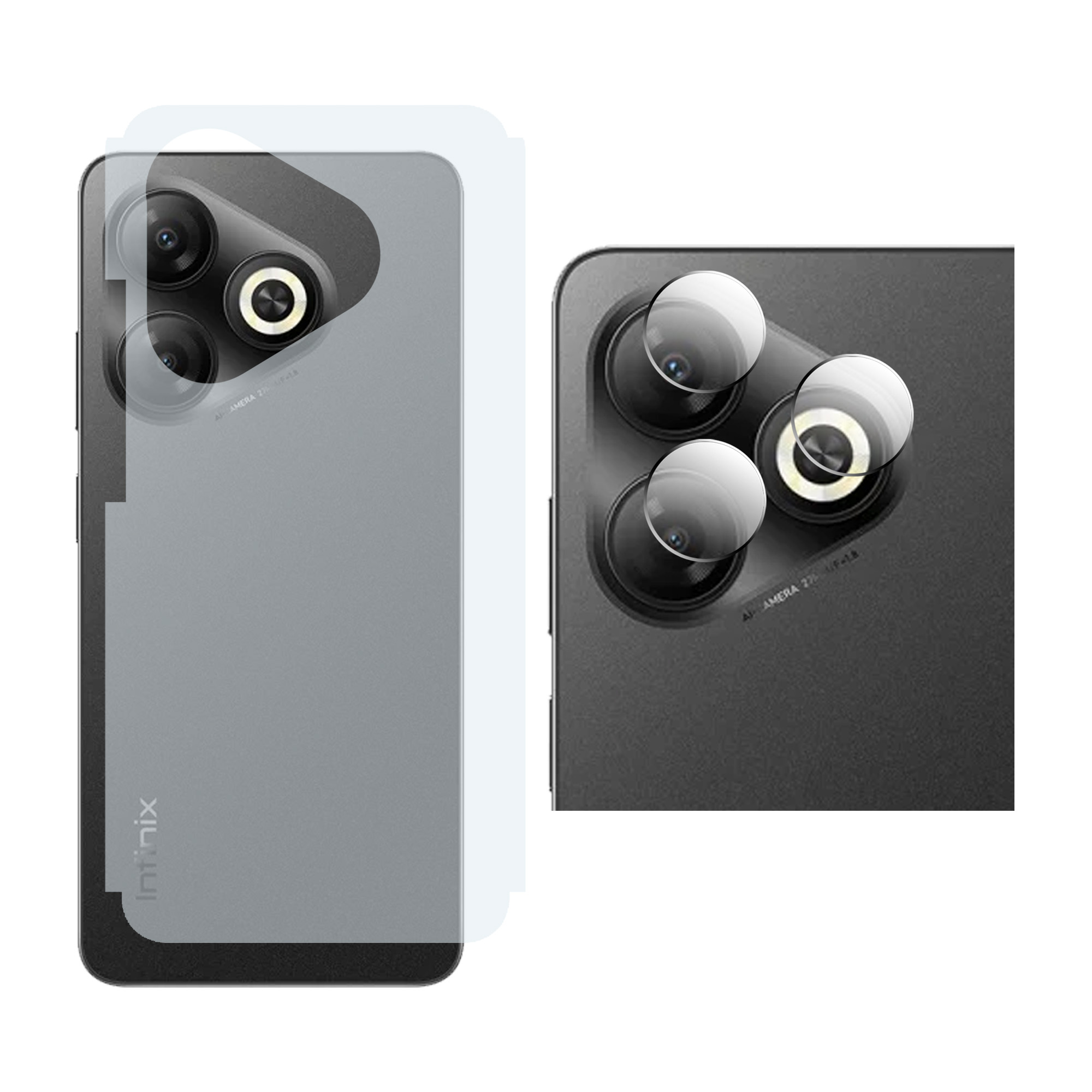 Secure the back of your phone. This 2-in-1 Back Bundle is designed to armor the rear of your Infinix Smart 10 HD. It includes a Carbon Matte Skin for superior grip on the body and a Lens Protector for the camera. Stop slips and scratches instantly.