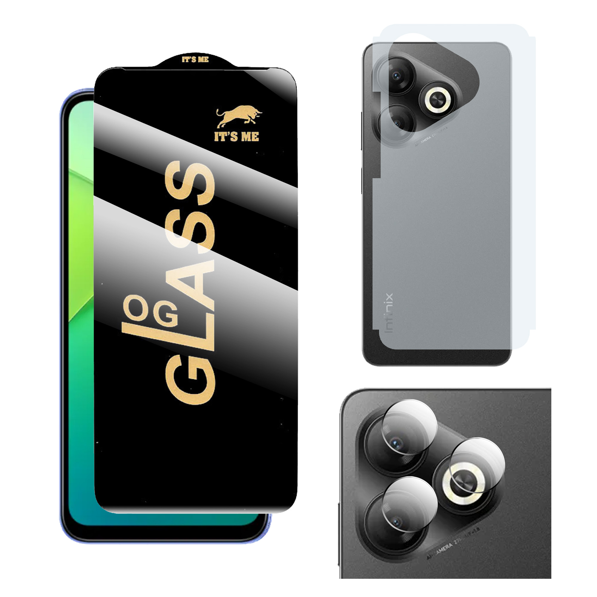 3-in-1 Full Protection Bundle for Infinix Smart 10 HD (HD Glass + Matte Back + Camera)