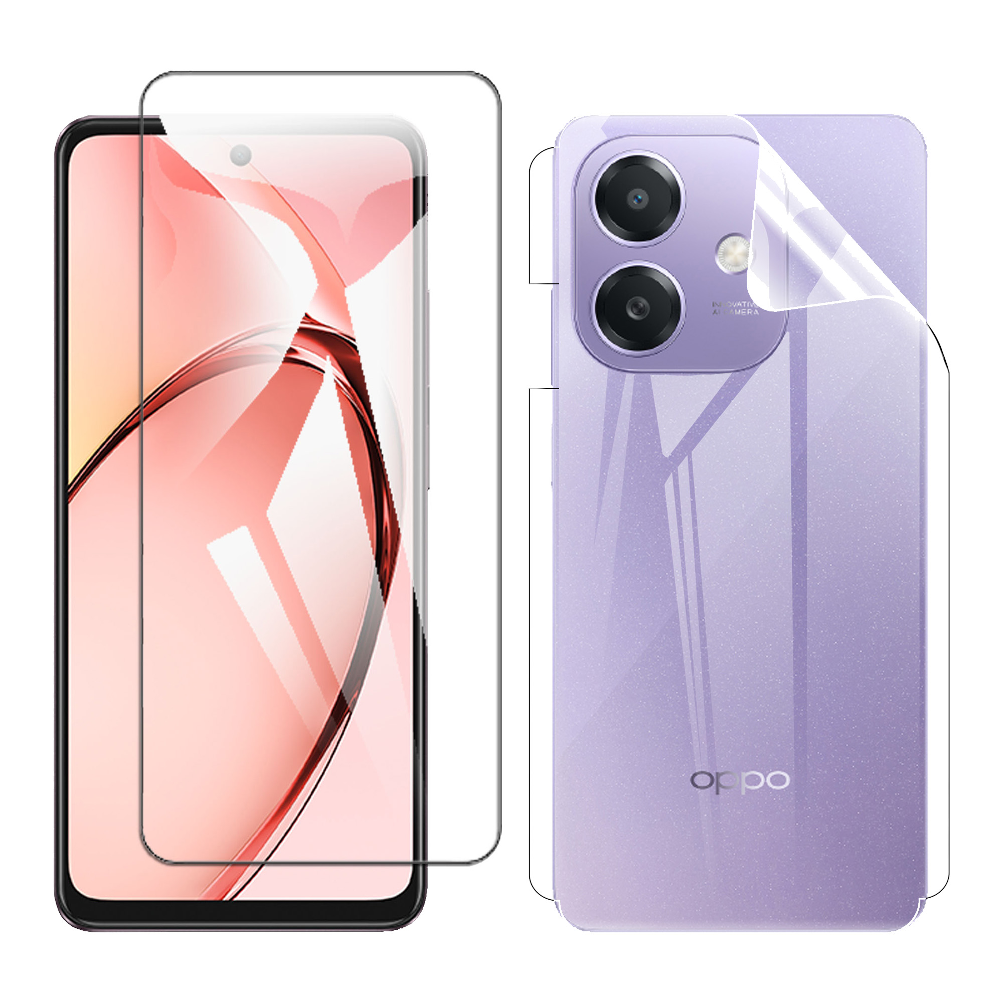 Why choose one when you can have the best of both worlds? Our 2-in-1 Hybrid Pack protects your Oppo A5i completely. It features a tough 9H Polish Glass for the screen to prevent cracks, and a flexible Clear Jelly Film for the back to prevent scratches without hiding the design.