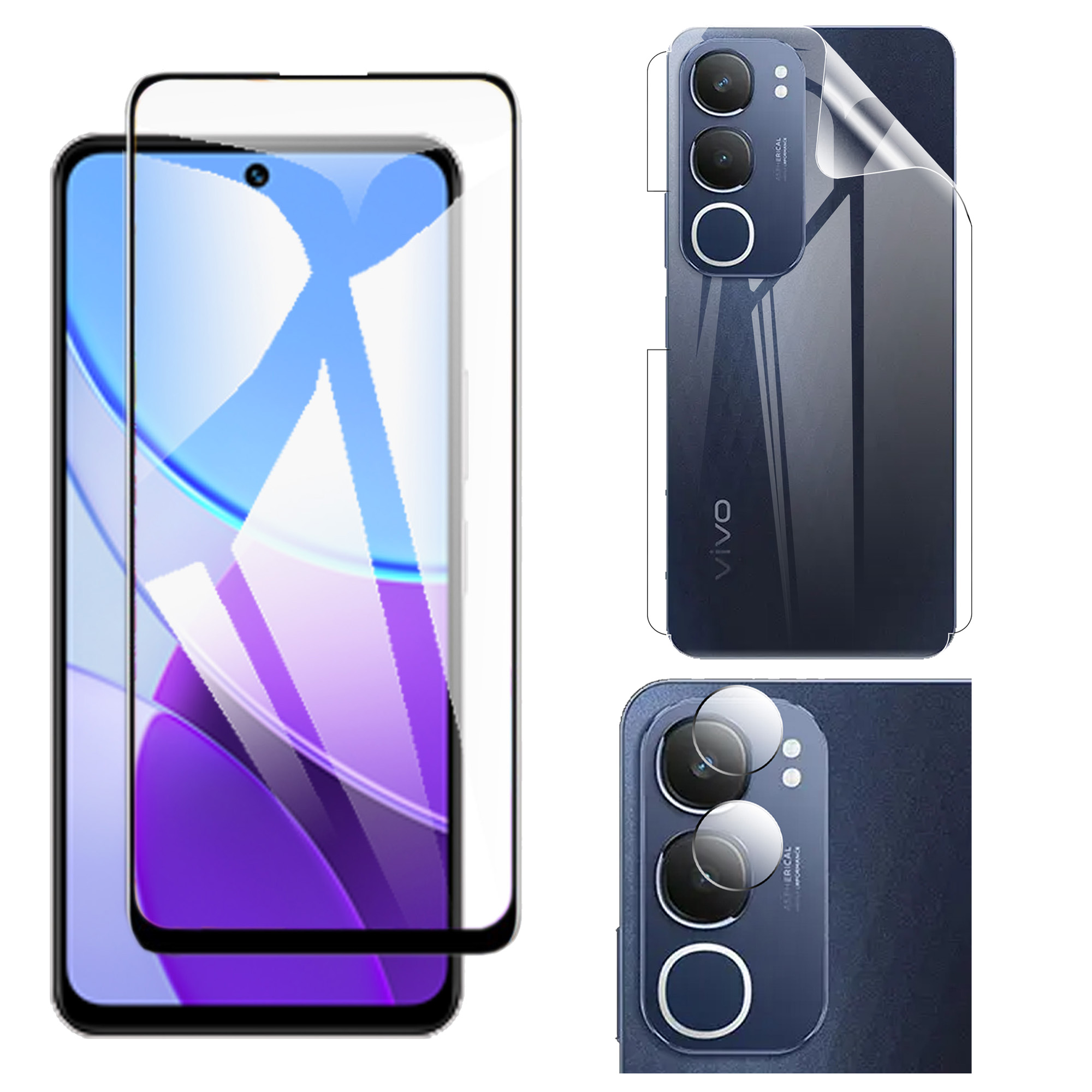 3-in-1 360 Clear Bundle for Vivo Y19s Pro: 9D + Jelly Camera