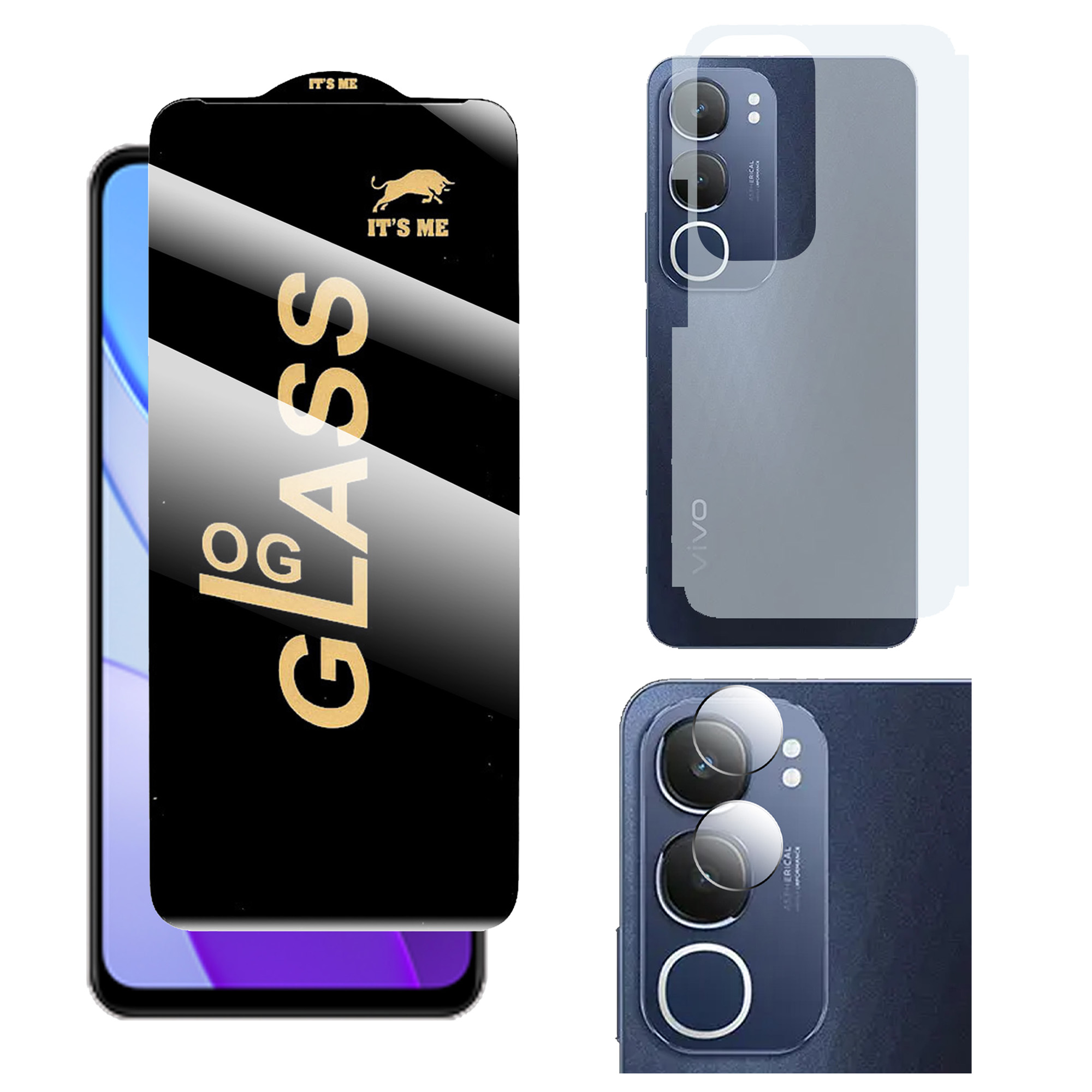 3-in-1 Full Protection Bundle for Vivo Y19s Pro (HD Glass + Matte Back + Camera)