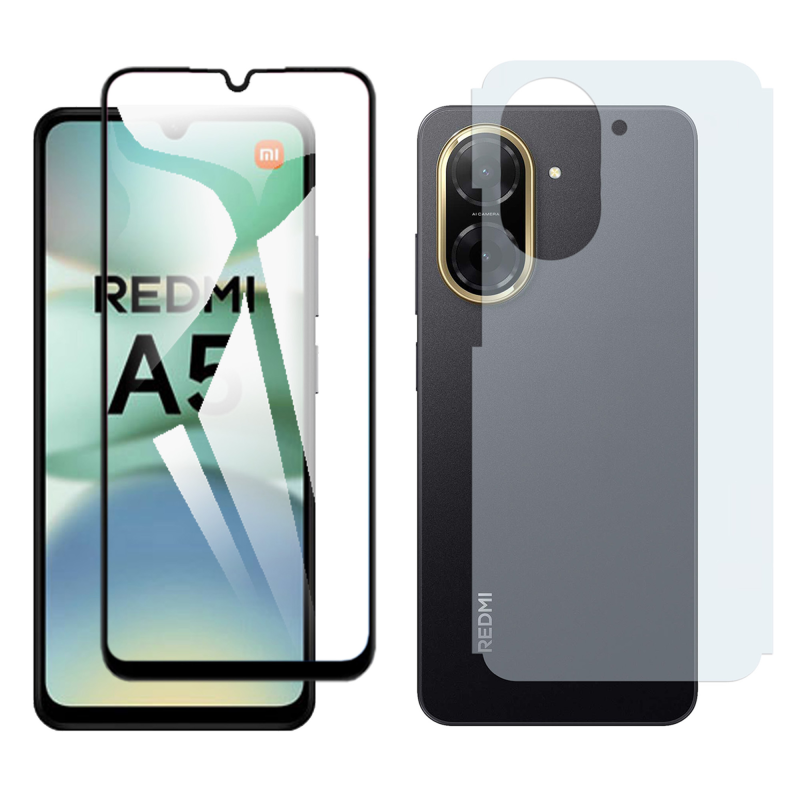 Xiaomi Redmi A5 Glass Protector 5D-10D-11D-21D-9D Full Coverage + Back Carbon Fiber Matte Soft Skin Sheet